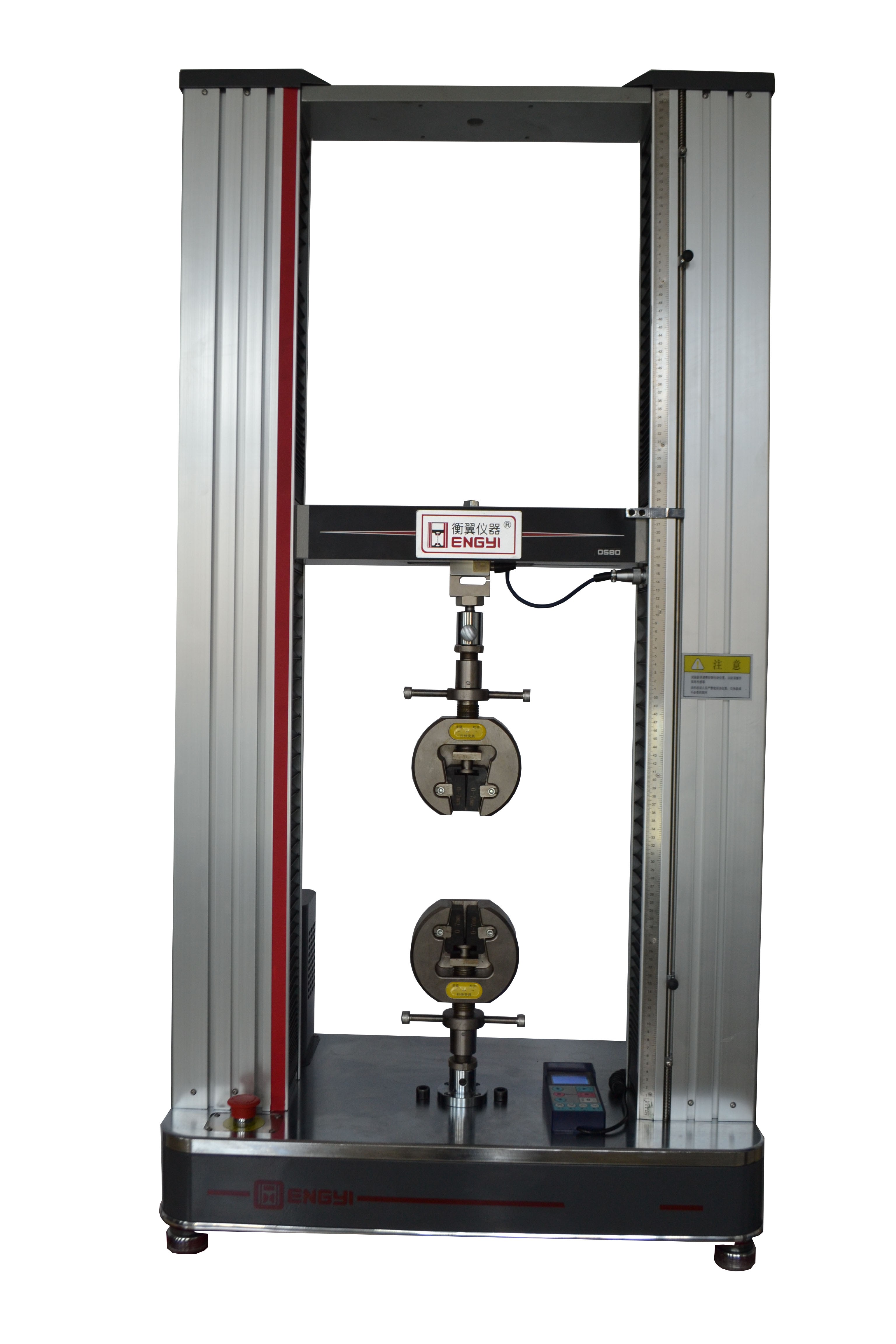 双臂桌面式电子万能试验机技术参数: 1. 产品规格: HY-0580(SB) 2. 精度等级: 0.5级 3. 负荷:50N/100N/200N/500N/ 1000N/2000/5000N(任选或多选) 4. 有效测力范围:0.1/100-100; 5. 试验力分辨率,负荷±500000码;内外不分档,且全程分辨率不变。 6. 位移分辨率:0.0001mm 7. 变形分辨率:0.0001mm 8. 有效试验宽度:380mm 9. 有效试验空间:850mm 10.采样频率:2000Hz 11. 试验速度:0.001~500mm/min(任意调) 12 速度精度:示值的±0.5%以内; 13.位移测量精度:示值的±0.5%以内; 14.变形测量精度:示值的±0.5%以内; 15.应力控速率范围: 0.005%~6%FS/S 16.应力控速率精度: 速率<0.05%FS/S时,为设定值的±1%以内;速率≥0.05%FS/S时,为设定值的±0.5%以内; 17.应变控速率范围: 0.002%~6%FS/S 18.应变控速率精度: 速率<0.05%FS/S时,为设定值的±2%以内;速率≥0.05%FS/S时,为设定值的±0.5%以内; 19. 恒力/位移/变形测量范围:0.5%~100FS 20.恒力/位移/变形测量精度:设定值<10%FS时, 为设定值的±1%以内; 设定值≥10%FS时, 为设定值的±0.1%以内; 21.试台升降装置:快/慢两种速度控制,可点动; 22.试台安全装置:电子限位保护 23.试台返回:手动可以高速度返回试验初始位置,自动可在试验结束后自动返回; 24.试验定时间自动停车,试验定变形自动停车,试验定负荷自动停车 25.超载保护:超过大负荷10%时自动保护; 26. 自动诊断功能,定时对测量系统、驱动系统进行过载、过压、过流、超负荷等检查,出现异常情况立即进行保护 27.电源功率: 750W 28.主机重量: 150kg 29. 电源电压: 220V(单相) 30. 主机尺寸:680*400*1550mm 31.配件: A.极耳专用平口夹具一套。B.焊点拉拔夹具一套。 C. 大变形工装一套。
